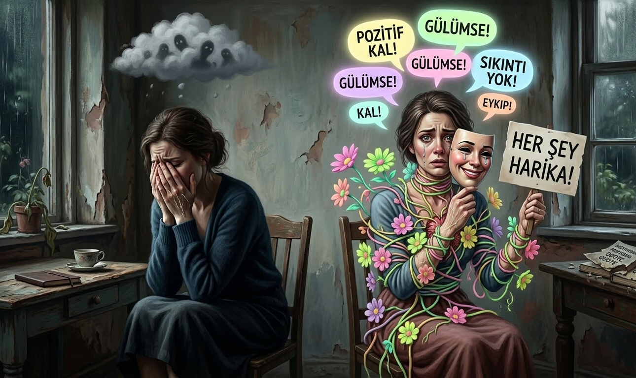 Modern psikoloji literatüründe, bireylere her durumda “olumlu düşün” baskısı yapmak ve zorlayıcı duyguları yok saymak, toksik pozitiflik olarak adlandırılır. Bu yaklaşım, iyi niyetli gibi görünse de, kişinin doğal duygusal süreçlerini sabote eder ve gerçek iyileşmeyi engeller.